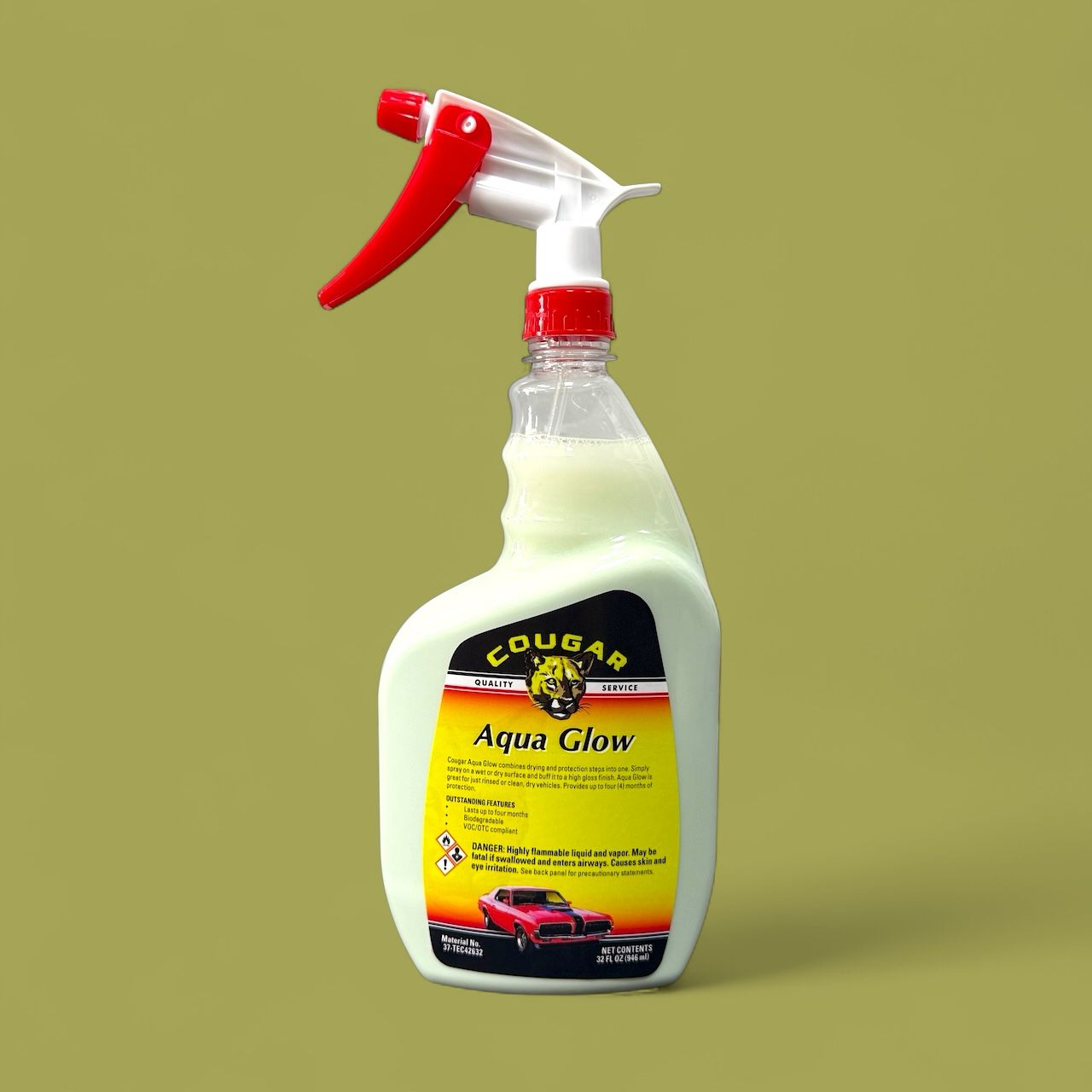 Aqua Glow may be the best automotive spray wax ever. Whether you’re searching for the best spray wax for just-rinsed cars or a spray to use on dry vehicles, Aqua Glow Spray Wax is for you. Aqua Glow is designed with Cougar Chemical’s signature formula to combine both drying and protection into one step. Simply spray Aqua Glow on a wet or dry (and clean) surface and buff it to a high-gloss finish. It won't streak even with a terry cloth towel!